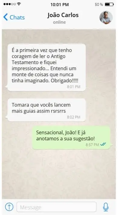 Se ao final desses 7 dias você não sentir que sua compreensão dos 5 primeiros livros da Bíblia foi transformada, basta nos enviar um único e-mail.